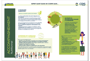 Au CPS-APA, l'alimentation est essentielle pour la santé globale. Nous proposons des conseils personnalisés et un suivi nutritionnel pour soutenir la santé physique et le bien-être quotidien, en visant une perte de poids durable si cela fait partie de vos objectifs, sans frustration.