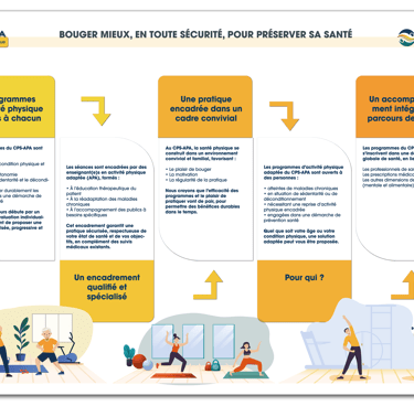 Depuis 2018, le CPS-APA adopte une approche intégrée de la santé, centrée sur l'individu et son territoire, en alliant programmes d’activité physique adaptée et un réseau pluridisciplinaire.