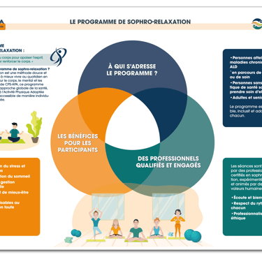 La sophro-relaxation est une méthode douce et naturelle qui améliore le bien-être en agissant sur le corps, l'esprit et les émotions. Au CPS-APA, ce programme s'inscrit dans une approche globale de la santé et est accessible de manière individuelle ou en complément de l'Activité Physique Adaptée (APA).