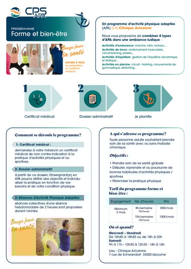 Les programmes d’activité physique adaptée du CPS-APA sont ouverts à des personnes :
